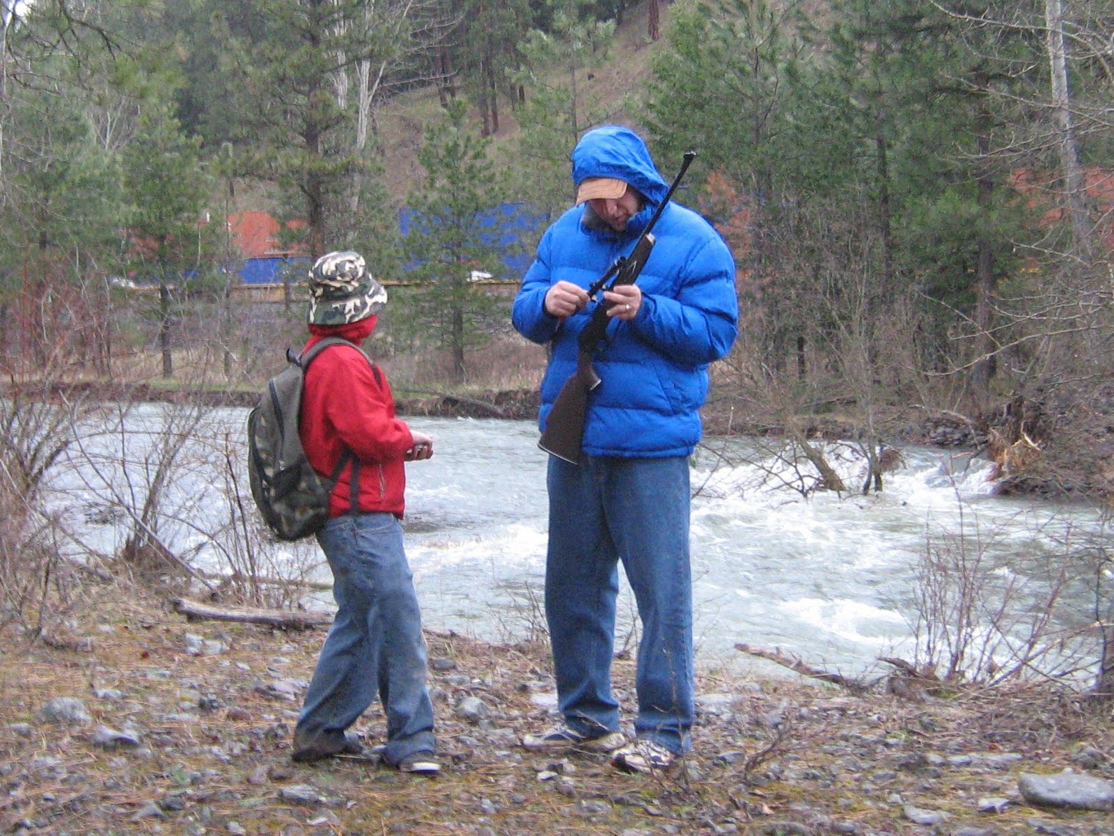 Dad and Brayden getting the pellet gun ready to shoot